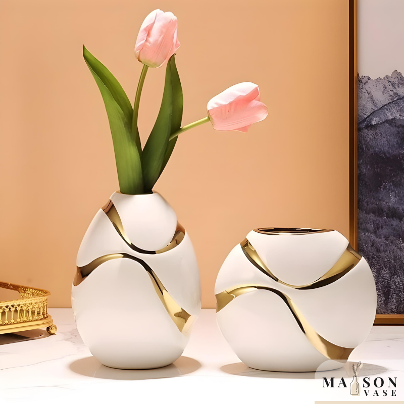 Vase Blanc Décoratif Moderne en Céramique | Finition Plaqué Or Élégante