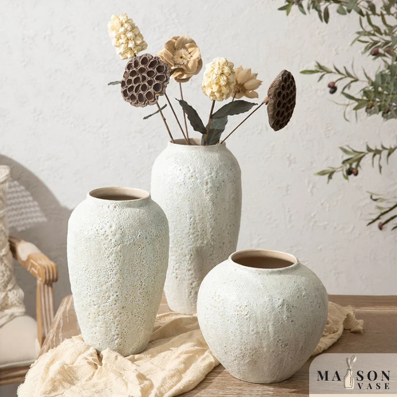 Certains vases, plus légers, sont parfaits pour être posés sur une étagère murale ou une console, tandis que d’autres, plus massifs, sont pensés pour être placés au sol.